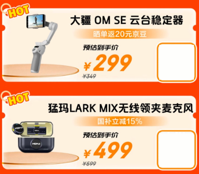 對于熱愛創(chuàng)作的消費者來說,一款趁手的設(shè)備能夠讓我們的創(chuàng)作過程更加順暢,記錄生活中的美好瞬間也變得更加得心應(yīng)手。大疆OSMO MOBILE SE云臺穩(wěn)定器,搭載新一代控制算法,可根據(jù)云臺姿態(tài)實時補償,有效消除畫面抖動,還具備智能跟隨6.0功能,精準追蹤拍攝目標。機身可折疊,便于收納攜帶,京東11.11預(yù)估到手價299元,曬單還可返京豆。猛瑪LARK MIX無線領(lǐng)夾麥克風,采用紐扣設(shè)計,僅重9克,支持雙重降噪與精準收音,續(xù)航長達40小時,傳輸距離達300米,讓創(chuàng)作更加從容,預(yù)估到手價499元。