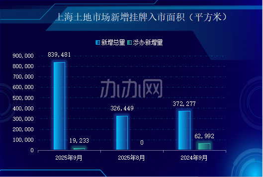 辦辦網(wǎng)數(shù)據(jù)顯示9月上海土地市場(chǎng)進(jìn)入放量期,供應(yīng)量和成交量同環(huán)比爆發(fā)式增長(zhǎng)。