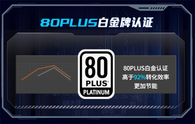 另外,這款電源還配備了氮化鎵晶體管,相較于傳統(tǒng)晶體管,具有更高的轉(zhuǎn)化效率和更低的發(fā)熱量,有助于延長(zhǎng)電源使用壽命并提升安全性。此外,還通過(guò)了80 PLUS白金牌認(rèn)證,為玩家提供了可靠的品質(zhì)保障。