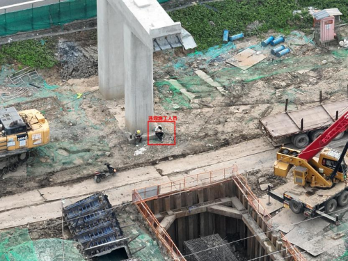 無(wú)人機(jī)巡飛過(guò)程中,通過(guò)AI技術(shù)實(shí)時(shí)識(shí)別施工風(fēng)險(xiǎn)問(wèn)題