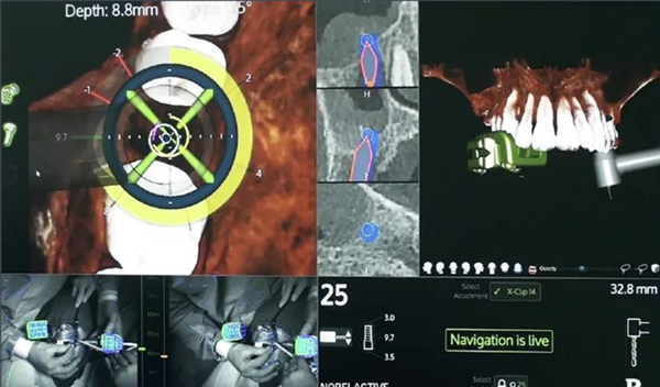 種植環(huán)節(jié)中,鼎植口腔引進的X-GUIDE 3D實時動態(tài)種植導航系統(tǒng),通過三維影像融合與光學定位系統(tǒng),為醫(yī)生提供動態(tài)操作參考。
