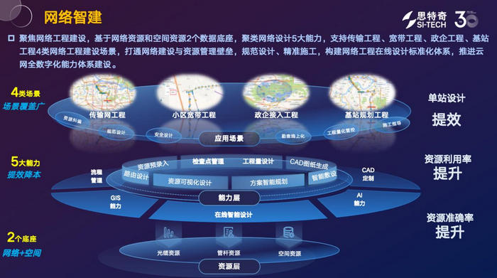 當(dāng)前,運(yùn)營商網(wǎng)絡(luò)工程建設(shè)領(lǐng)域痛點(diǎn)突出,“資源數(shù)據(jù)割裂、設(shè)計(jì)標(biāo)準(zhǔn)不統(tǒng)一、施工精準(zhǔn)度不足”的問題已成為行業(yè)普遍困擾。傳輸、寬帶、政企、基站四大類工程場景需求差異顯著,而傳統(tǒng)設(shè)計(jì)依賴人工勘察,不僅耗時(shí)耗力,還易因數(shù)據(jù)誤差引發(fā)資源錯配,直接影響網(wǎng)絡(luò)建設(shè)質(zhì)量與后續(xù)運(yùn)維效率。針對這一核心痛點(diǎn),思特奇“網(wǎng)絡(luò)智建”解決方案以物理資源與空間資源為雙數(shù)據(jù)底座,聚合網(wǎng)絡(luò)設(shè)計(jì)五大核心能力,構(gòu)建全流程自動化管控體系,為四類工程場景提供標(biāo)準(zhǔn)化、智能化支撐。