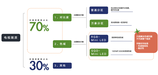 在SQD-Mini LED技術誕生前,全球顯示行業(yè)對“好畫質” 的認知存在明顯局限:好畫質是對比度和色域共同鑄就的,但多數企業(yè)將重心放在對比度或分辨率的單一突破上,卻忽視了“色彩穩(wěn)定”這一核心需求。過去十年,盡管控光技術、對比度提升,但色域始終未能突破——無法在全場景下保持高色域穩(wěn)定,多色復雜場景下的色彩失真、長期使用后的偏色問題,成為制約高端顯示體驗的關鍵瓶頸。