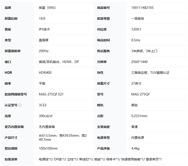 微星MAG 275QF E21黑刃顯示器詳情請點擊:https://item.jd.com/100111482165.html