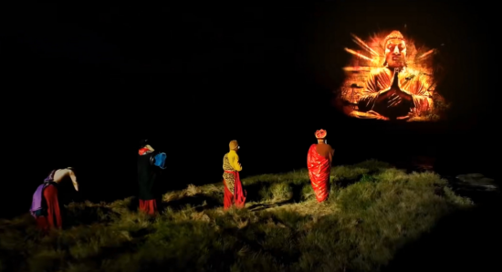 使用科視Christie Griffyn 4K50-RGB投影機投射于崖壁的生動佛像影像