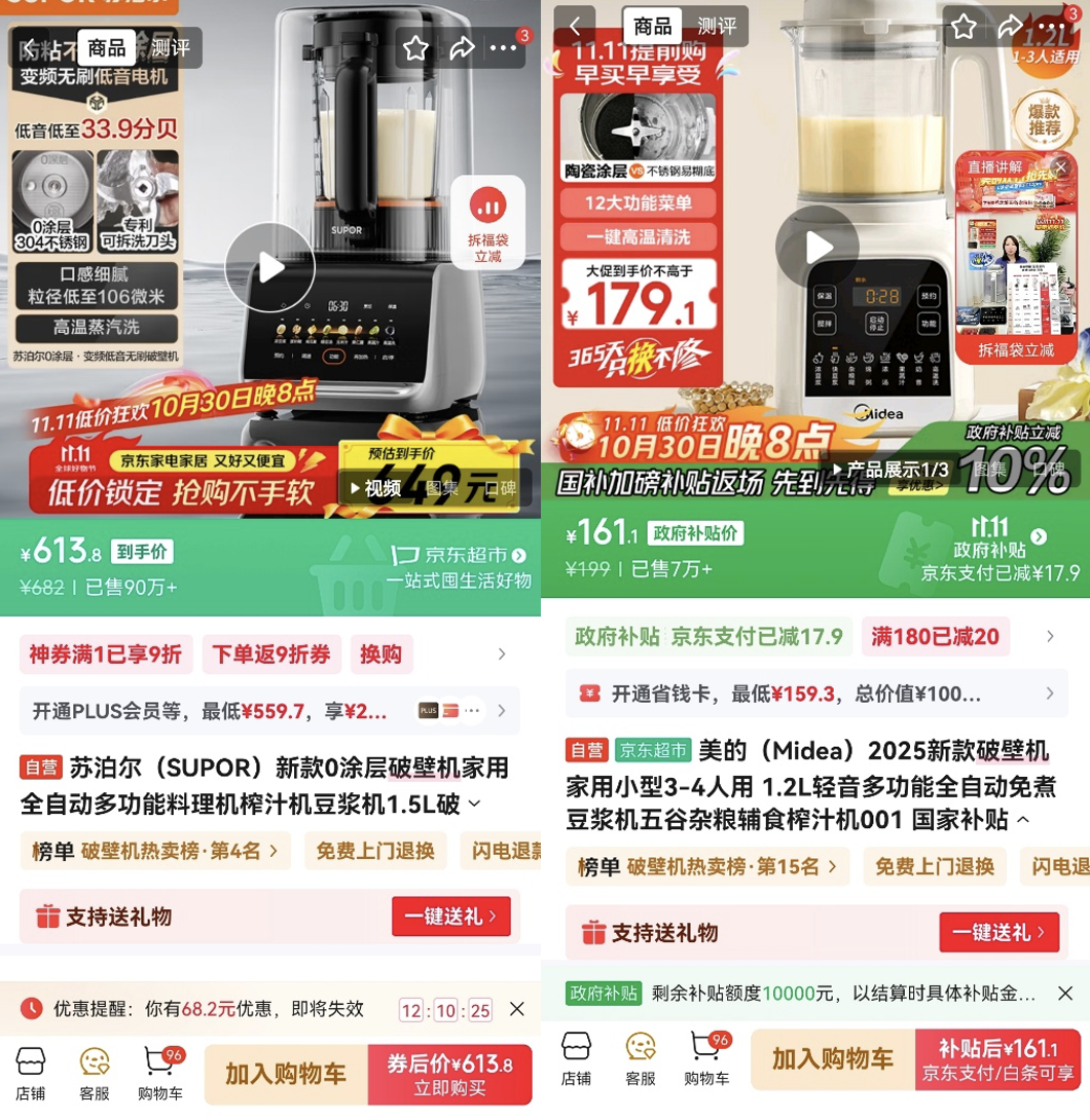 蘇泊爾 SP511R采用十重降噪設(shè)計(jì),運(yùn)行噪音低至48分貝。0 涂層 304 不銹鋼杯體采用食品級(jí)304不銹鋼內(nèi)膽,安全健康。1.5L 大容量適配家庭需求,同時(shí)支持 12 小時(shí)預(yù)約和3小時(shí)保溫。京東下單到手價(jià)僅需613.8元。