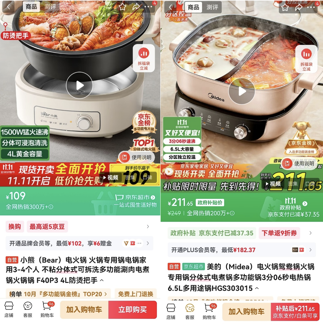 京東11.11廚房小電福利加碼 小熊電火鍋現(xiàn)貨速發(fā) 下單到手價(jià)不高于109元