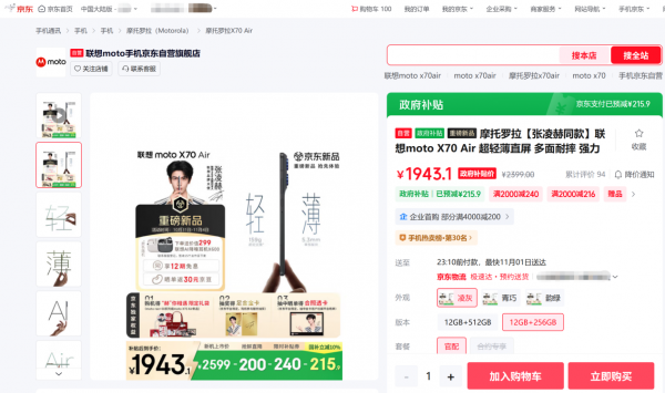 想要換新聯(lián)想moto X70 Air,那就快來京東11.11先人一步下單吧。