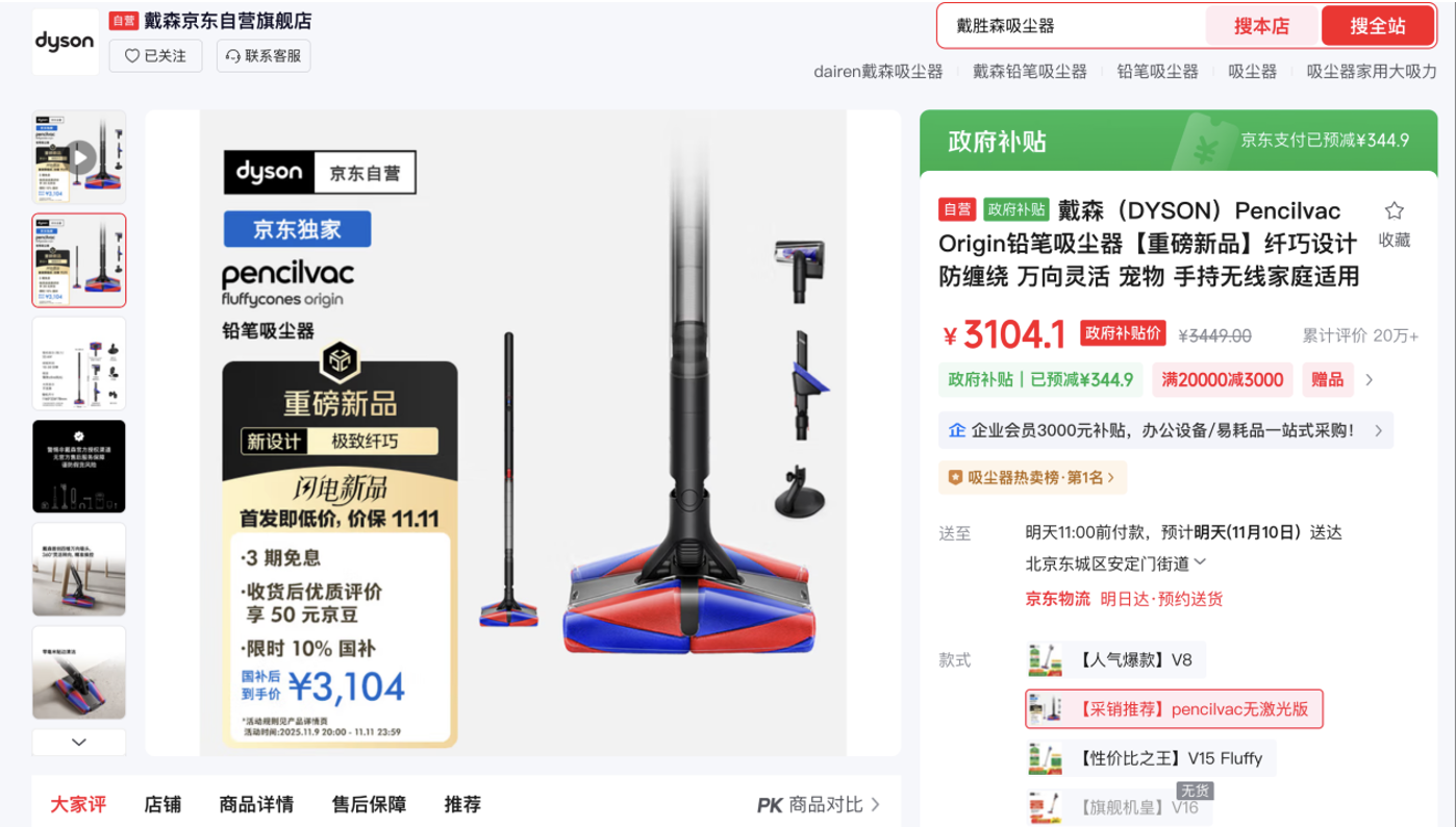 想要及時省心清潔地面,戴森Pencilvac Origin鉛筆吸塵器少不了。機身僅38毫米粗細、0.92kg重量,靈活易用。馬達轉(zhuǎn)速高達14萬轉(zhuǎn)/分鐘,除塵率達99%,四錐萬向吸頭不易纏繞,搭配免打孔磁吸充電底座,收納充電一步到位。京東11.11下單享限時10%國補,到手價3104.1元。