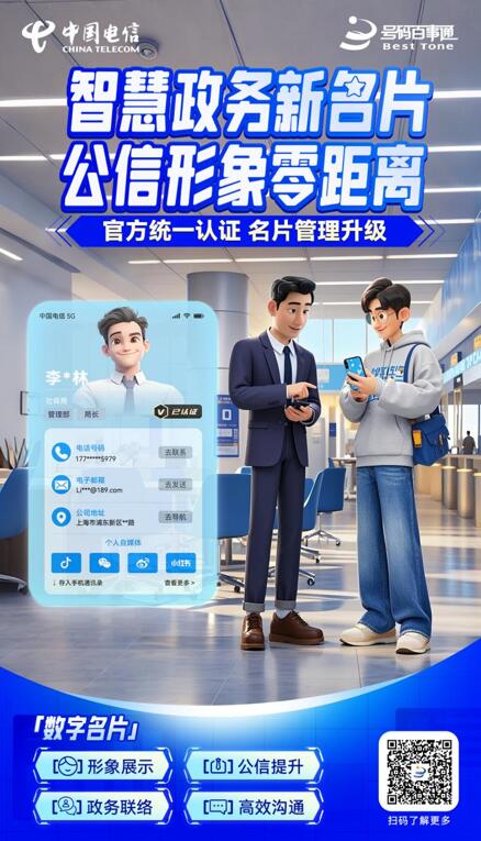 另外,數(shù)字名片可通過中國電信AI+人工雙重審核機(jī)制,為企業(yè)信息賦予認(rèn)證標(biāo)簽,避免因信息真?zhèn)坞y辨錯(cuò)過合作機(jī)會。