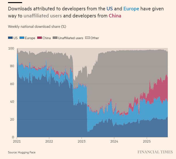 11 月 27 日消息,據(jù)英國(guó)《金融時(shí)報(bào)》報(bào)道,在全球開(kāi)源人工智能也就是 AI 模型市場(chǎng),中國(guó)已經(jīng)超越美國(guó),在這項(xiàng)強(qiáng)大技術(shù)的全球應(yīng)用方面獲得了關(guān)鍵優(yōu)勢(shì)。