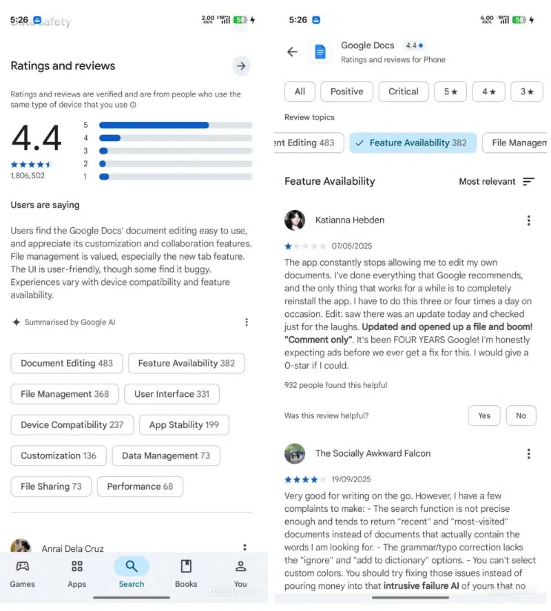 谷歌 Play 商店推出 AI 評論摘要功能,用戶可快速了解 App 優(yōu)缺點(diǎn)