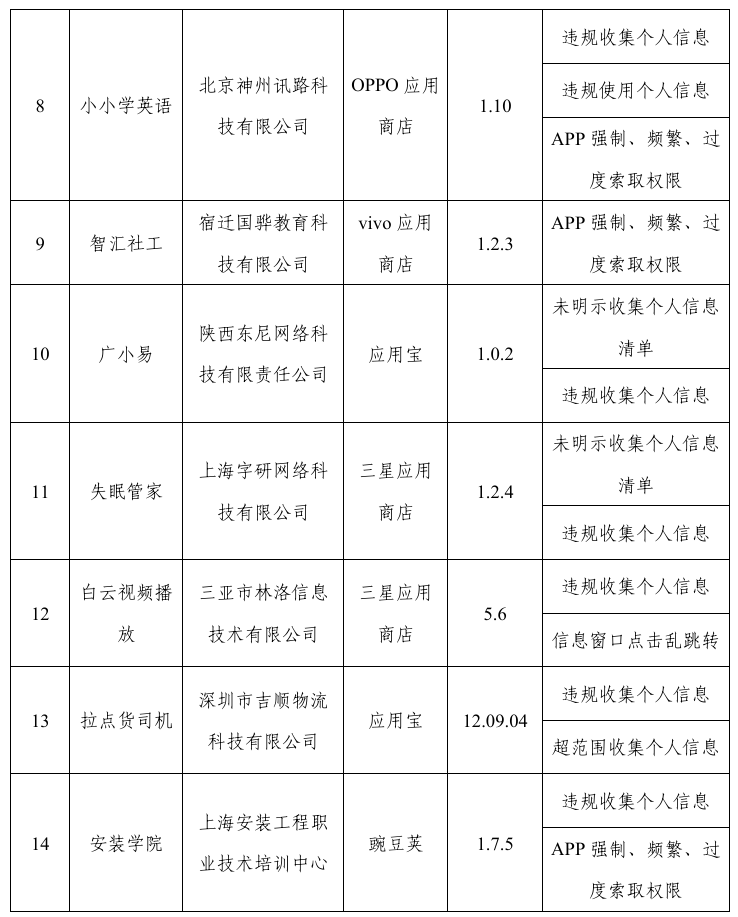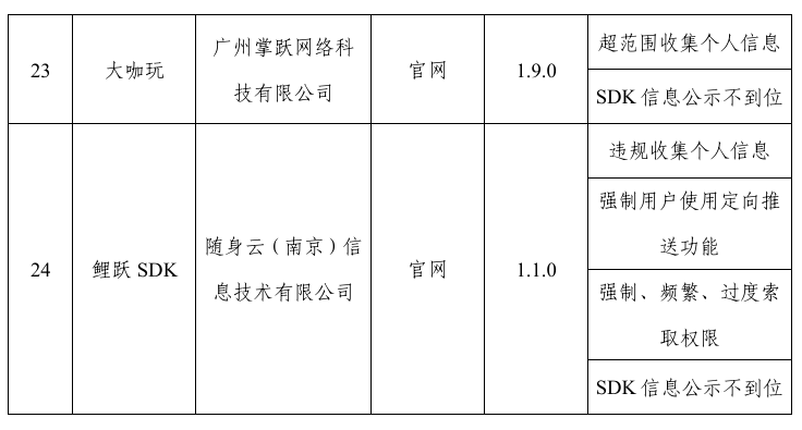 飛象網(wǎng)訊(致新/文)12月10日消息,工信部對(duì)APP、SDK違法違規(guī)收集使用個(gè)人信息等問題開展治理。近期,經(jīng)組織第三方檢測機(jī)構(gòu)進(jìn)行抽查,共發(fā)現(xiàn)24款A(yù)PP及SDK存在侵害用戶權(quán)益行為(詳見附件),現(xiàn)予以通報(bào)。