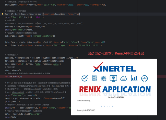 【自動化測試于RTSM結(jié)合】當(dāng)自動化開啟RTSM執(zhí)行測試,可隨時對測試儀前端界面執(zhí)行情況實時觀察,可隨機觀察代碼運行過程中的Renix客戶端的執(zhí)行情況,界面展示,中途變化等,并且還能隨時介入客戶端手動接管調(diào)試;只需以下三步即可: