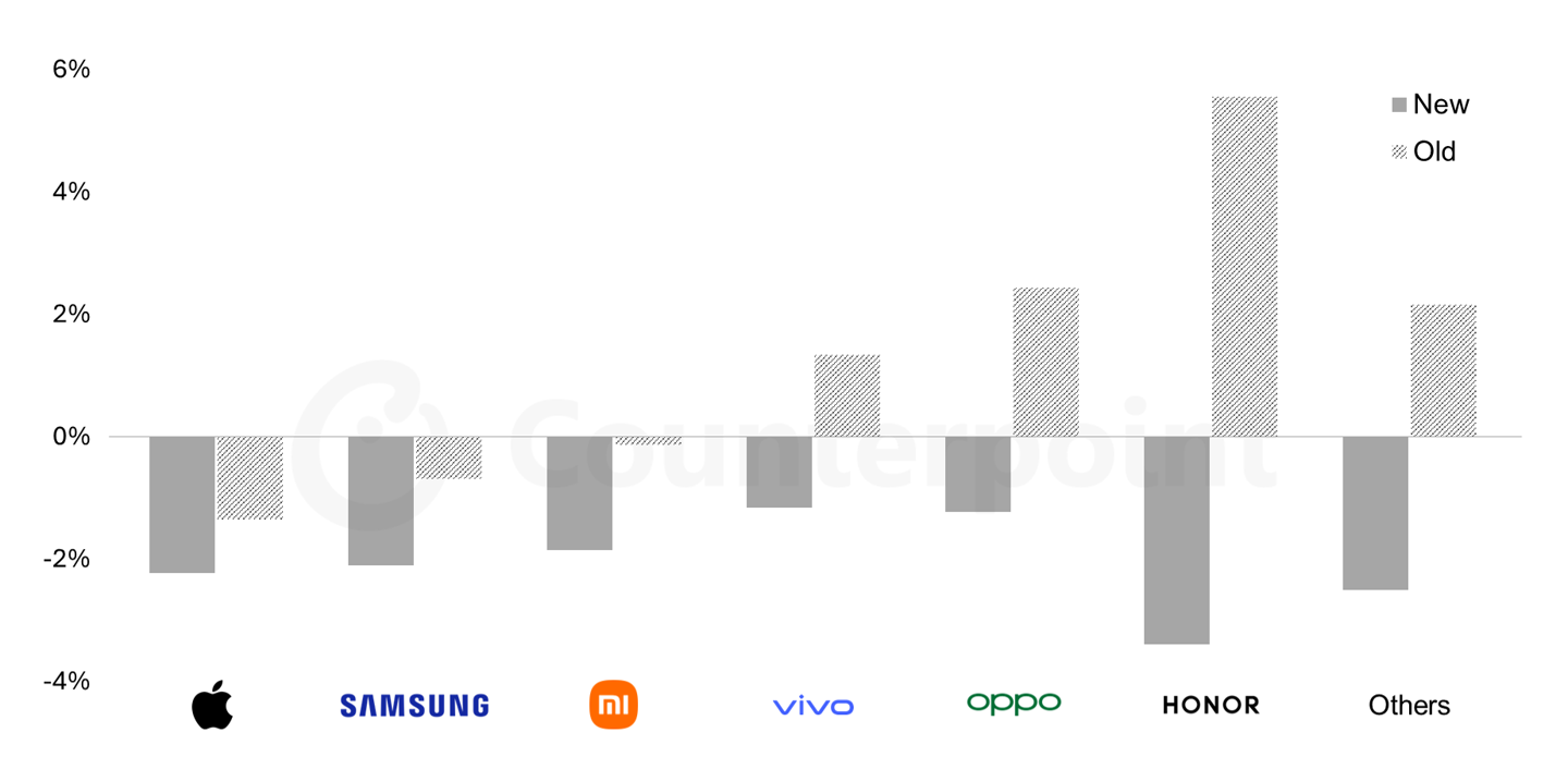 Counterpoint 高級分析師王陽(音譯)表示:“蘋果與三星在未來幾個(gè)季度的抗風(fēng)險(xiǎn)能力最強(qiáng)。但對于其他廠商而言,在市場份額與利潤率的平衡上,其操作空間要小得多,處境將十分艱難。隨著明年時(shí)間推移,這一態(tài)勢將在中國本土手機(jī)廠商身上體現(xiàn)得尤為明顯。”