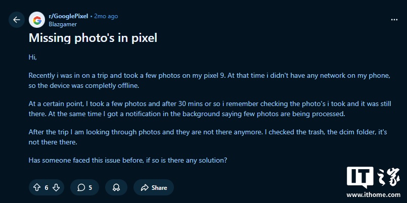 部分用戶反映谷歌 Pixel 手機(jī)出現(xiàn)奇怪 Bug:拍攝的照片不翼而飛
