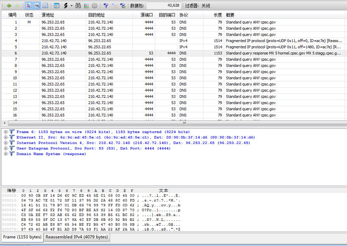 xnSight平臺(tái)實(shí)時(shí)觸發(fā)“異常UDP流量告警”,并迅速定位流量集中于DNS協(xié)議。通過(guò)提取DNS數(shù)據(jù)包進(jìn)行深度解碼,發(fā)現(xiàn)以下特征: