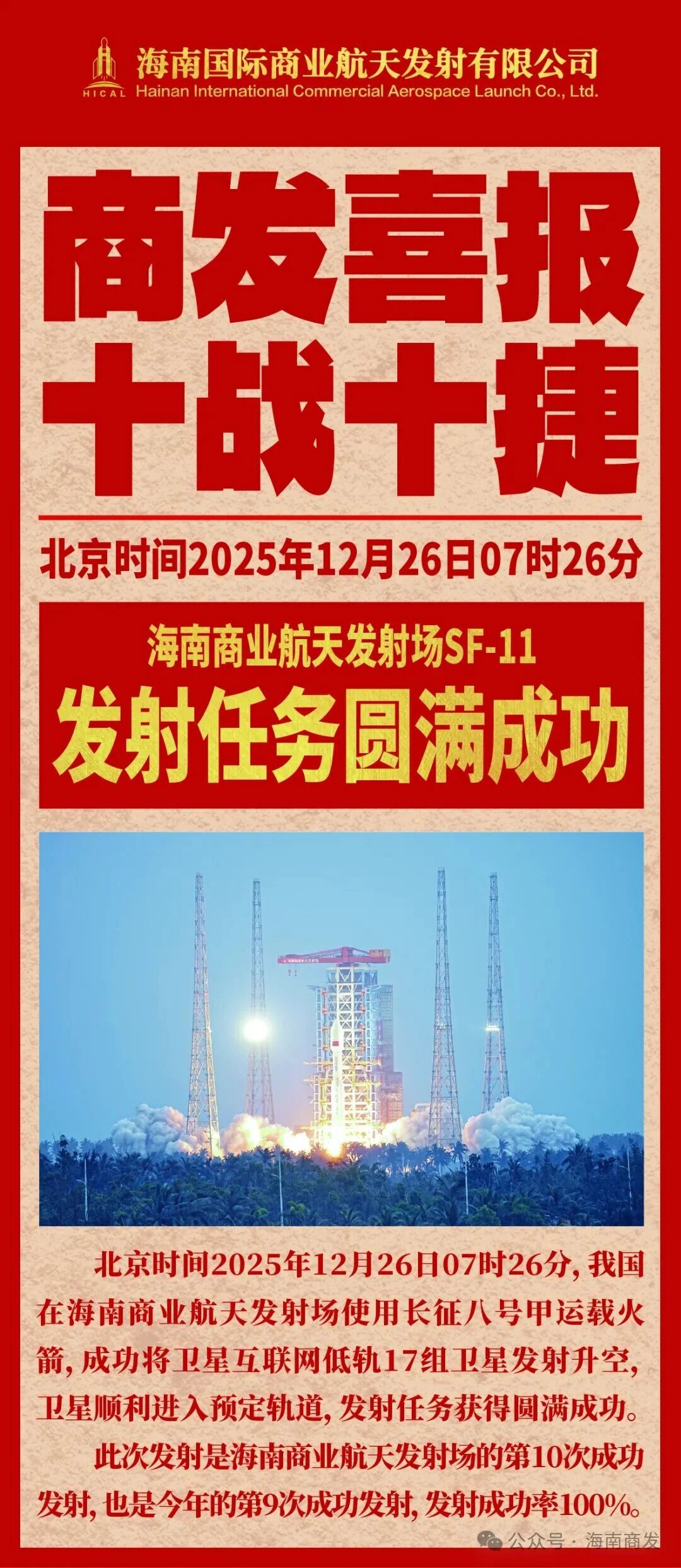 海南商發(fā)十戰(zhàn)十捷:我國衛(wèi)星互聯(lián)網(wǎng)低軌 17 組衛(wèi)星發(fā)射成功,長八甲火箭 2025 年完美收官
