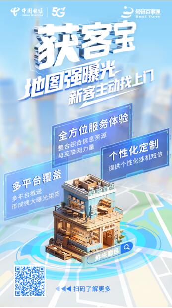 若說多平臺覆蓋是獲客寶的“廣度武器”,那一站式服務(wù)體驗(yàn)便是其深耕商戶需求的“深度擔(dān)當(dāng)”。中小商戶往往缺乏專業(yè)的營銷團(tuán)隊,面對拉新、轉(zhuǎn)化、留存的全流程運(yùn)營常感力不從心。而獲客寶整合中國電信的綜合信息資源與互聯(lián)網(wǎng)技術(shù)優(yōu)勢,將店鋪維系、圖片更新、視頻海報制作、商品活動推廣、掛機(jī)名片設(shè)置等功能融為一體,打造出“全鏈路智慧營銷生態(tài)”。
