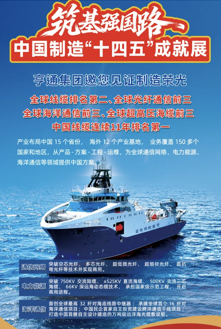 本次,亨通展示了在通信網(wǎng)絡、電力能源、海洋通信等核心領域的技術突破成果與標桿產(chǎn)品,這也是公司“十四五”期間深耕國家重點布局產(chǎn)業(yè),交出的核心答卷。