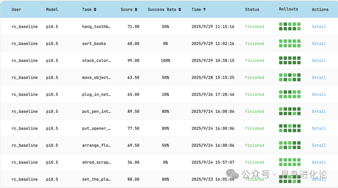 一位具身智能從業(yè)者對(duì)“具身進(jìn)化論”分析,RoboChallenge的獨(dú)特價(jià)值正是在于提供透明、可復(fù)現(xiàn)的真機(jī)評(píng)估環(huán)境,避免主觀展示帶來(lái)的偏差。隨著越來(lái)越多模型加入測(cè)評(píng),業(yè)內(nèi)對(duì)“模型真實(shí)能力差異”有了更清晰的認(rèn)知。