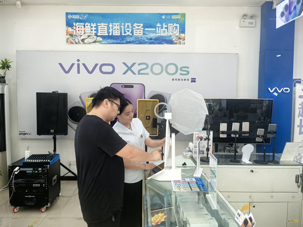 環(huán)形補光燈、高清攝像頭、提詞器、麥克風(fēng)……位于連云港贛榆鄉(xiāng)鎮(zhèn)的東北網(wǎng)格服務(wù)廳在內(nèi)部設(shè)置了直播經(jīng)濟“售服”區(qū),通過引入專業(yè)設(shè)備、搭建沉浸式體驗區(qū),有效滿足鄉(xiāng)鎮(zhèn)網(wǎng)紅、商戶的直播需求;營業(yè)員轉(zhuǎn)型為“直播服務(wù)顧問”,以場景化服務(wù)引導(dǎo)客戶體驗直播全流程,同步提供直播技能培訓(xùn)、設(shè)備調(diào)試及流量套餐定制等服務(wù)。