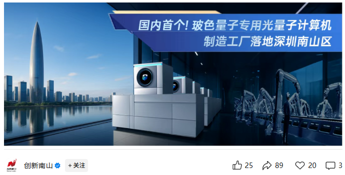 據(jù)創(chuàng)新南山,國(guó)內(nèi)量子計(jì)算領(lǐng)軍企業(yè) —— 北京玻色量子科技有限公司(IT之家以下簡(jiǎn)稱“玻色量子”)自建的“專用光量子計(jì)算機(jī)制造工廠”近日正式落地深圳南山智城。