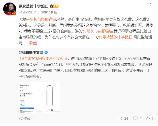 羅永浩談蘋果手機掛繩賣479元:蘋果有權(quán)這么做,但割粉絲韭菜很惡心,臭不要臉