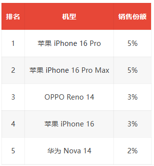 9 月 11 日消息,市場調(diào)查機(jī)構(gòu) CounterPoint Research 昨日(9 月 10 日)發(fā)布博文,報(bào)告了 2025 年 6 月中國市場最暢銷 5 款智能手機(jī)機(jī)型,其中 iPhone 16 Pro 和 iPhone 16 Pro Max 均以 5% 份額,位居榜首。