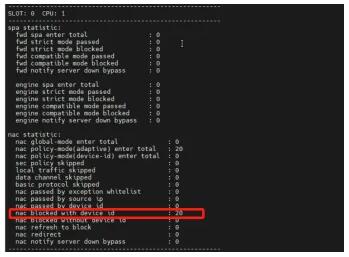 • 啟動測試例之后,在DUT上查看網絡準入情況:網絡準入驗證失敗