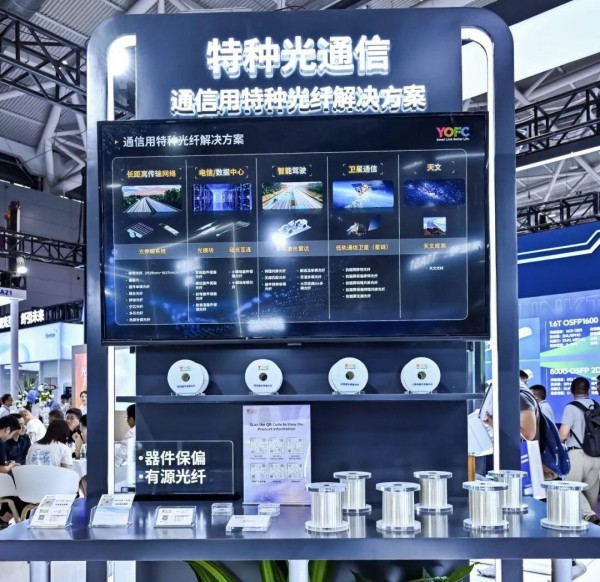 第26屆中國(guó)國(guó)際光電博覽會(huì)的長(zhǎng)飛展臺(tái)上,同樣展示了多元化的全場(chǎng)景應(yīng)用成果,包括AI智算樞紐、特種光通信、智能感知、工業(yè)激光、全光智能車、綠色照明等六大主題產(chǎn)品與解決方案。例如,整合空芯、多芯等前沿光纖,高品質(zhì)多模光纖,高密度綜合布線系統(tǒng),400G/800G/1.6T高速光模塊等創(chuàng)新產(chǎn)品的長(zhǎng)飛AI智算樞紐解決方案;全功率、全波段、全脈寬的特種光纖解決方案所展現(xiàn)的長(zhǎng)飛公司在工業(yè)激光特種光纖全球領(lǐng)先的技術(shù)實(shí)力;深度融合車載光纖通信、車載光纖照明、車載激光雷達(dá)鉺鐿共摻光纖、車載電池光纖監(jiān)測(cè)、碳化硅五大技術(shù),打造的“全光智能車”解決方案;從核心材料、關(guān)鍵器件到激光光源的自主創(chuàng)新全產(chǎn)業(yè)鏈產(chǎn)品,以及全新旋芯架構(gòu)激光解決方案。從多個(gè)領(lǐng)域與實(shí)際業(yè)務(wù)場(chǎng)景形象地呈現(xiàn)了特種光纖對(duì)于現(xiàn)實(shí)世界的賦能。