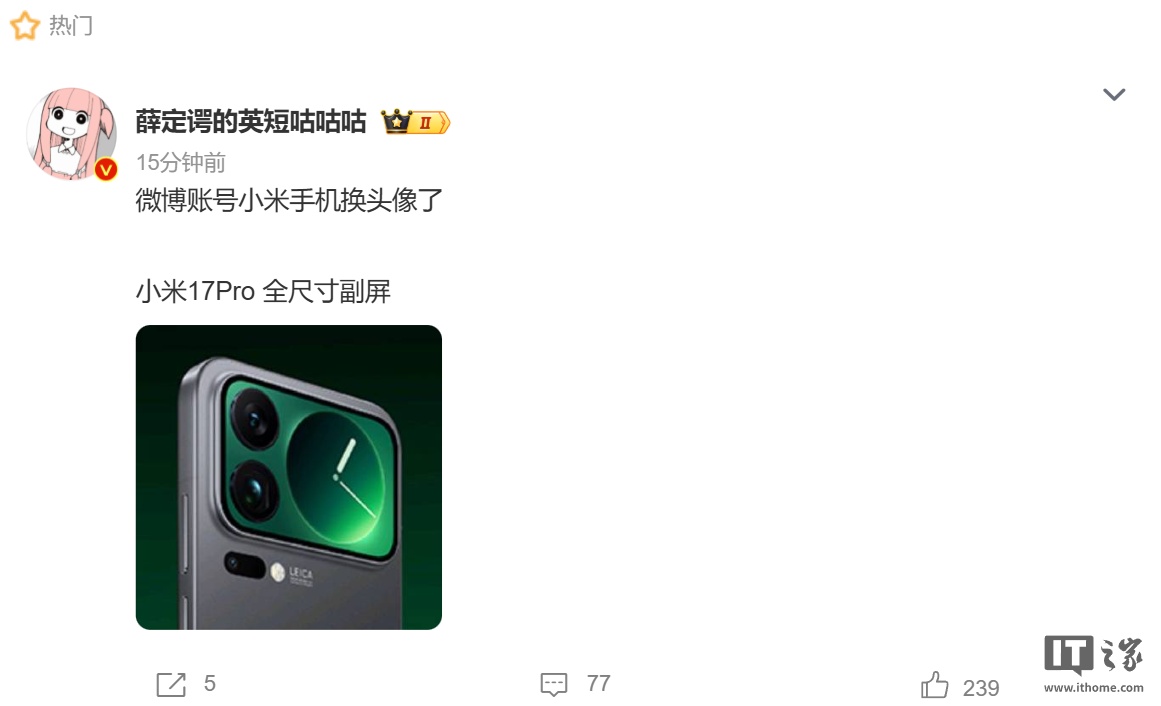截至IT之家發(fā)稿,小米手機(jī)官方微博已撤下這個頭像,換回了以小米 MIX Flip 2 鉆石限定版為主題的頭像。