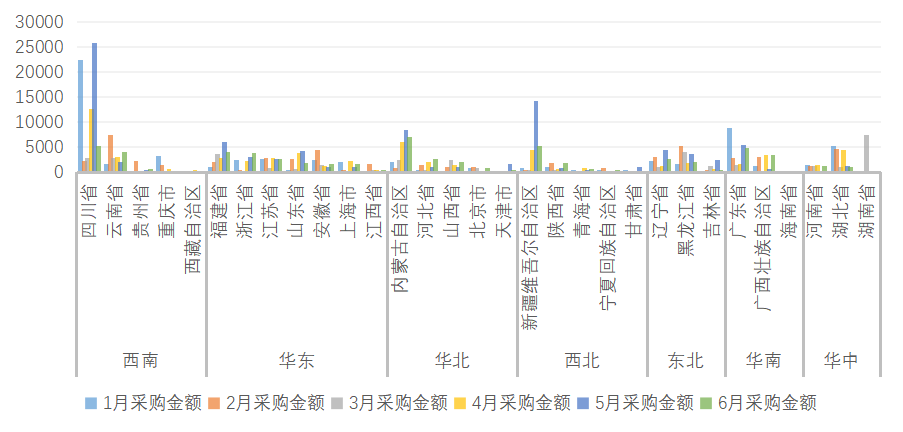 圖4:各省2025年1-6月采購金額統(tǒng)計(jì)(單位:萬元)