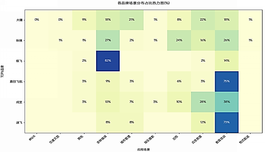 圖5:2025年1-6月TOP6品牌應(yīng)用場(chǎng)景分布熱力圖