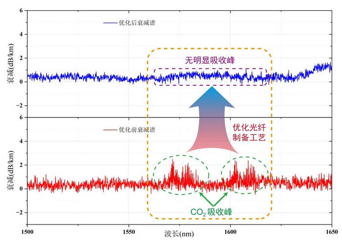 現(xiàn)網(wǎng)試點(diǎn)中發(fā)現(xiàn),C+L波段CO₂吸收峰可能干擾波分復(fù)用系統(tǒng)穩(wěn)定性。通過(guò)氣體成分優(yōu)化與封裝工藝改進(jìn),將吸收峰損耗波動(dòng)降低至工程可容忍閾值,為超寬波段(S+C+L)穩(wěn)定傳輸?shù)於ɑA(chǔ)。