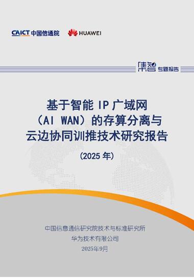 中國信通院標(biāo)準(zhǔn)所聯(lián)合發(fā)布《基于智能IP廣域網(wǎng)(AI WAN)的存算分離與云邊協(xié)同訓(xùn)推技術(shù)研究報告(2025年)》