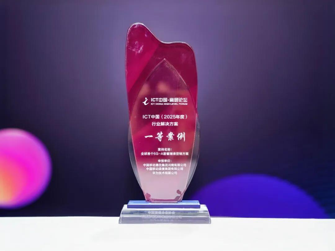 河南移動(dòng)聯(lián)合華為全球首創(chuàng)5G-A套餐"Try&Buy"精準(zhǔn)營(yíng)銷(xiāo)方案斬獲ICT中國(guó)(2025年度)一等獎(jiǎng)