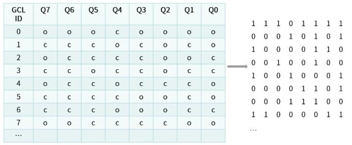 如圖1所示各隊列的門的開/關狀態(tài)由GCL精確控制。GCL可以有多行,GCL根據(jù)基準時間BaseTime,循環(huán)執(zhí)行,每CycleTime執(zhí)行一次。
