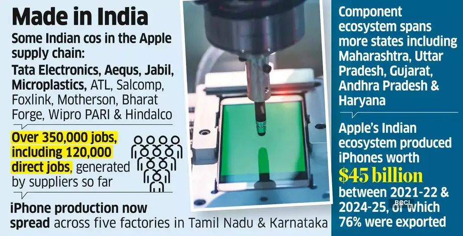 經(jīng)濟(jì)時(shí)報(bào)昨日(9 月 29 日)發(fā)布博文,報(bào)道稱蘋果公司已大幅擴(kuò)展其在印度的供應(yīng)鏈,合作伙伴數(shù)量增至近 45 家,累計(jì)創(chuàng)造約 35 萬(wàn)個(gè)就業(yè)崗位。