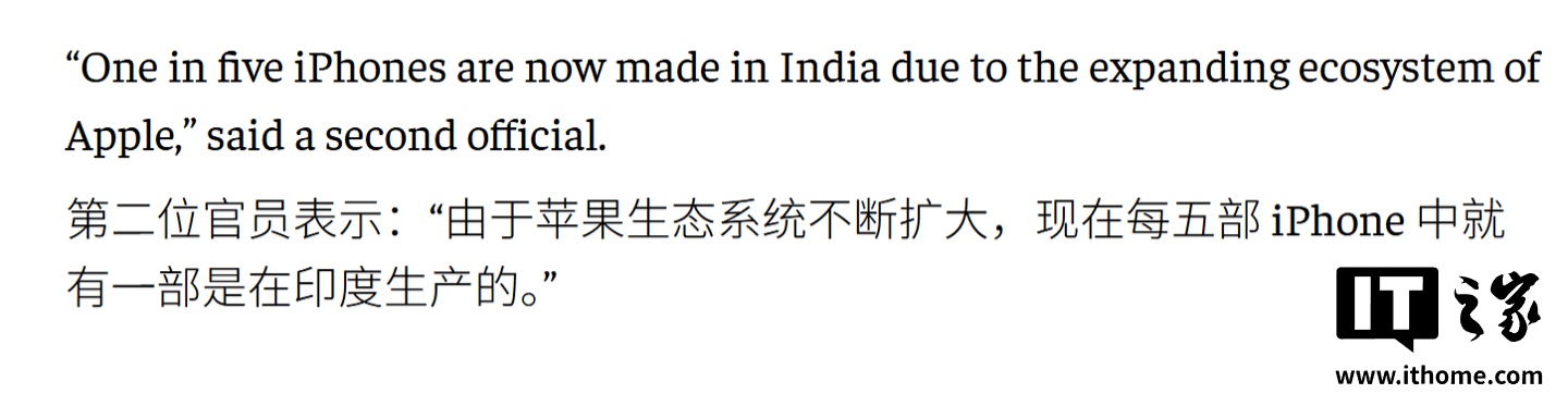 更重要的是,其中 76%(價(jià)值 340 億美元)的 iPhone 產(chǎn)品被銷往海外市場(chǎng),讓智能手機(jī)從 2014-15 財(cái)年印度出口排行榜的第 167 位躍升至榜首,彰顯了印度作為全球出口中心日益增長(zhǎng)的重要性。