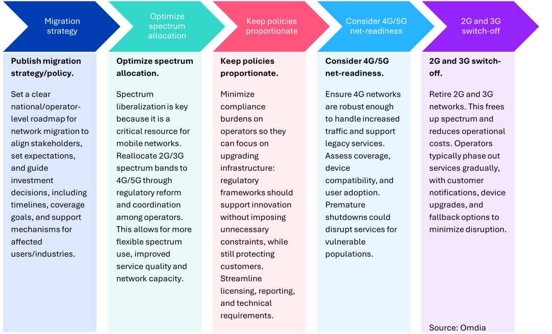 McBride指出:“隨著2G與3G加速退網(wǎng),消費(fèi)者保護(hù)已成為監(jiān)管機(jī)構(gòu)的主要關(guān)注點(diǎn)。老年人、農(nóng)村人口、IoT用戶以及使用遺留設(shè)備的用戶面臨最大服務(wù)中斷風(fēng)險(xiǎn)。為此,監(jiān)管機(jī)構(gòu)開(kāi)始要求實(shí)施清晰透明的溝通策略,包括退網(wǎng)時(shí)間表、替代服務(wù)方案、遷移計(jì)劃以及技術(shù)支持,以確保平穩(wěn)過(guò)渡!