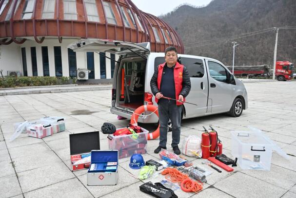 陳鋒的后備箱里,各種工具碼放得整整齊齊,猶如一個移動的“微型應急救援站”。除了通信維修工具,撬棍、破碎錘、救生衣、救生圈、救援繩、滅火器、強光手電,還有裝著創(chuàng)可貼、碘酒、速效救心丸的急救箱。這些東西,有買來的,也有他親手制作的。