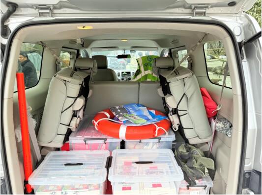陳鋒后備箱常備應急救援物品、學雷鋒書籍
