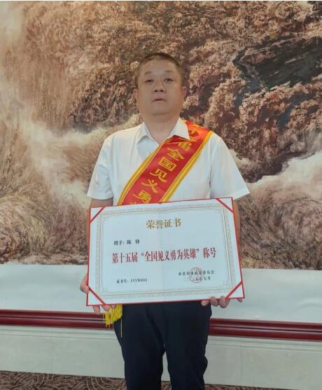 2025年7月陳鋒被評為第十五屆“全國見義勇為英雄”稱號