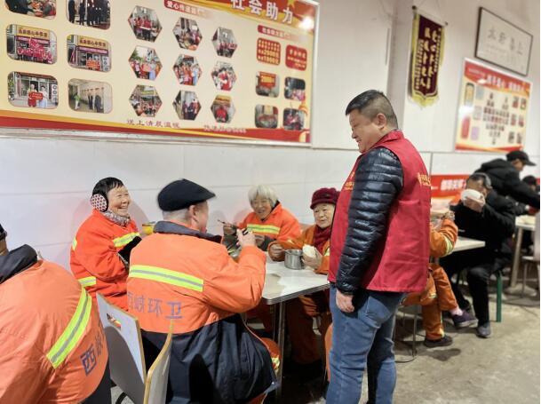 陳鋒凌晨四點在西峽縣愛心早餐店與環(huán)衛(wèi)工人聊天,記錄困難